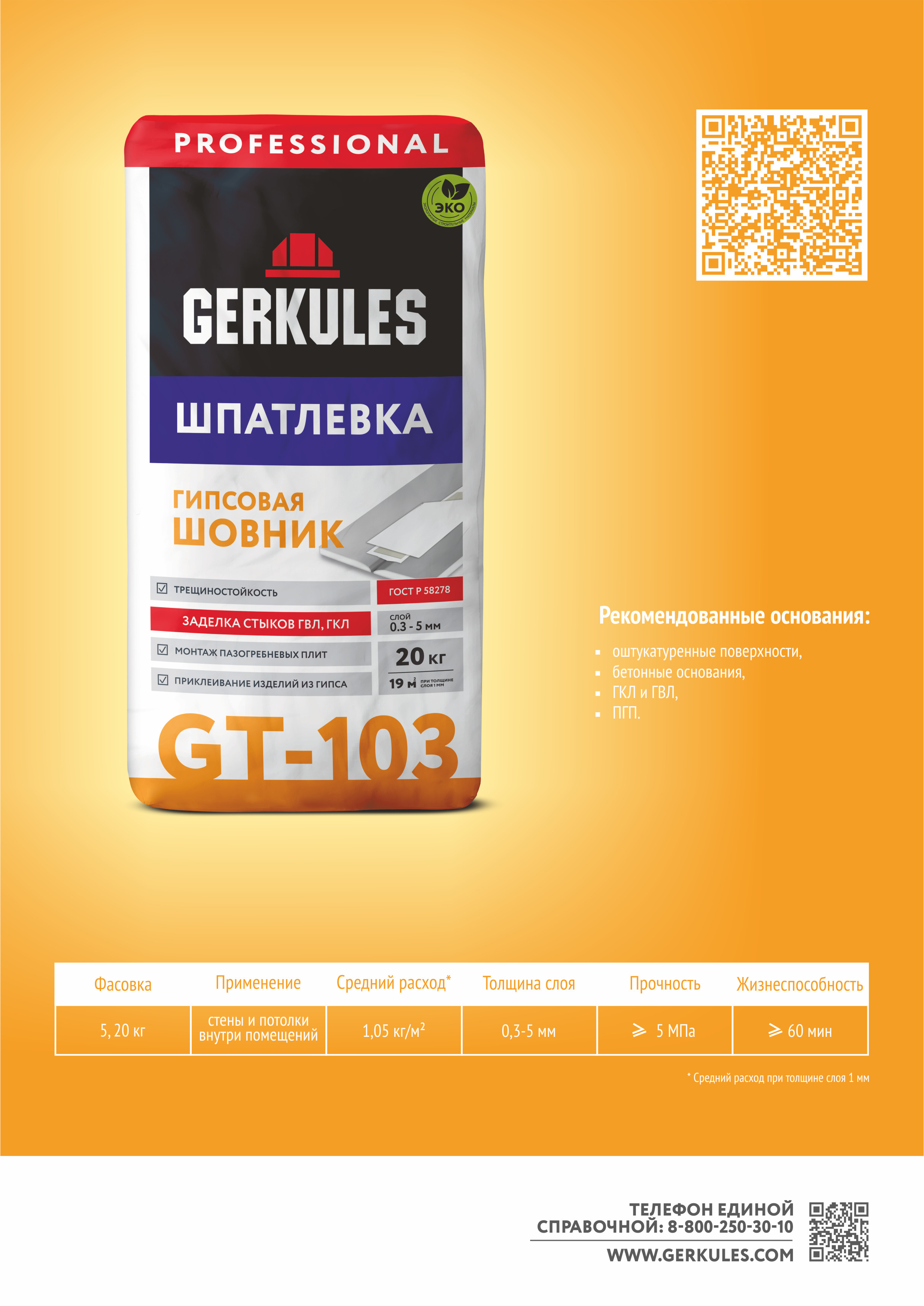 Шпатлевку наносят и разравнивают стальным шпателем в один или несколько слоев. Толщина одного слоя 0,3 до 5 мм за один проход. Допускается коррекция слоя в течение 10 мин. без задиров и скатывания. Каждый последующий слой наносится после полного высыхания предыдущего слоя (около 24 часов). Скорость высыхания слоя зависит от его толщины, а также температуры и влажности в помещении. Перед нанесением каждого последующего слоя, поверхность необходимо обработать грунтовками GERKULES GE-19, GE-29 или GE-129 согласно инструкции.