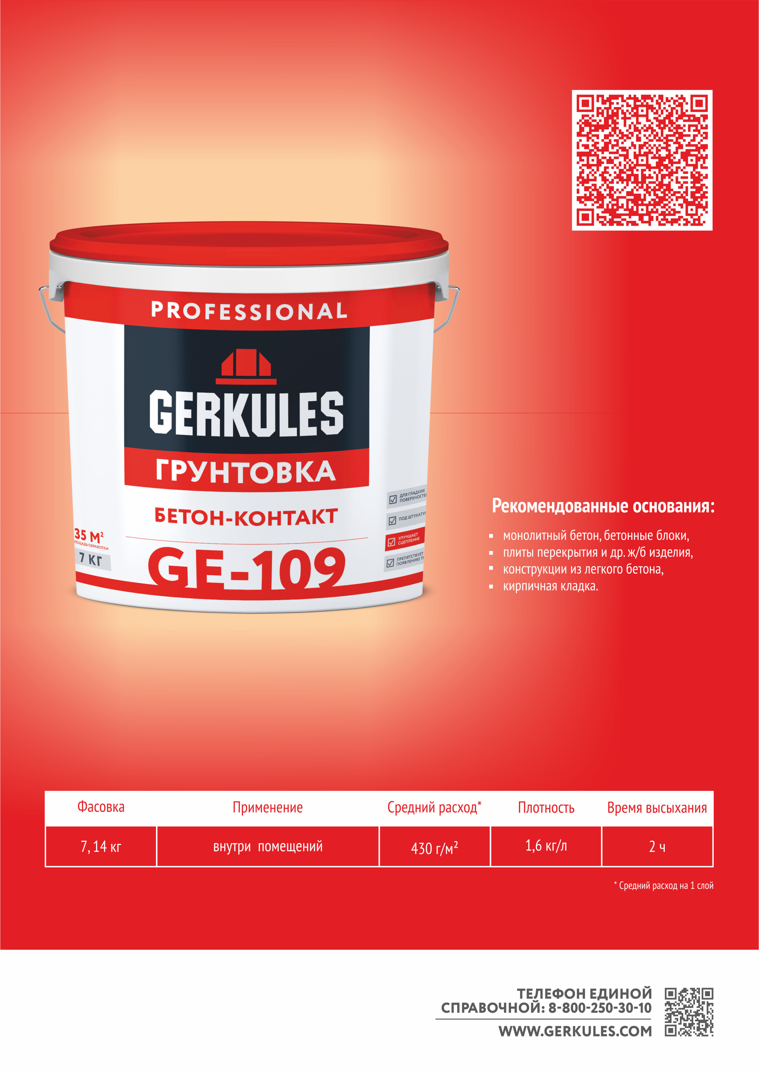 Профессиональная грунтовка предназначена для создания шероховатой поверхности и увеличения адгезии на гладких слабо впитывающих и невпитывающих основаниях стен и потолков перед нанесением гипсовых штукатурок GERKULES внутри помещений.