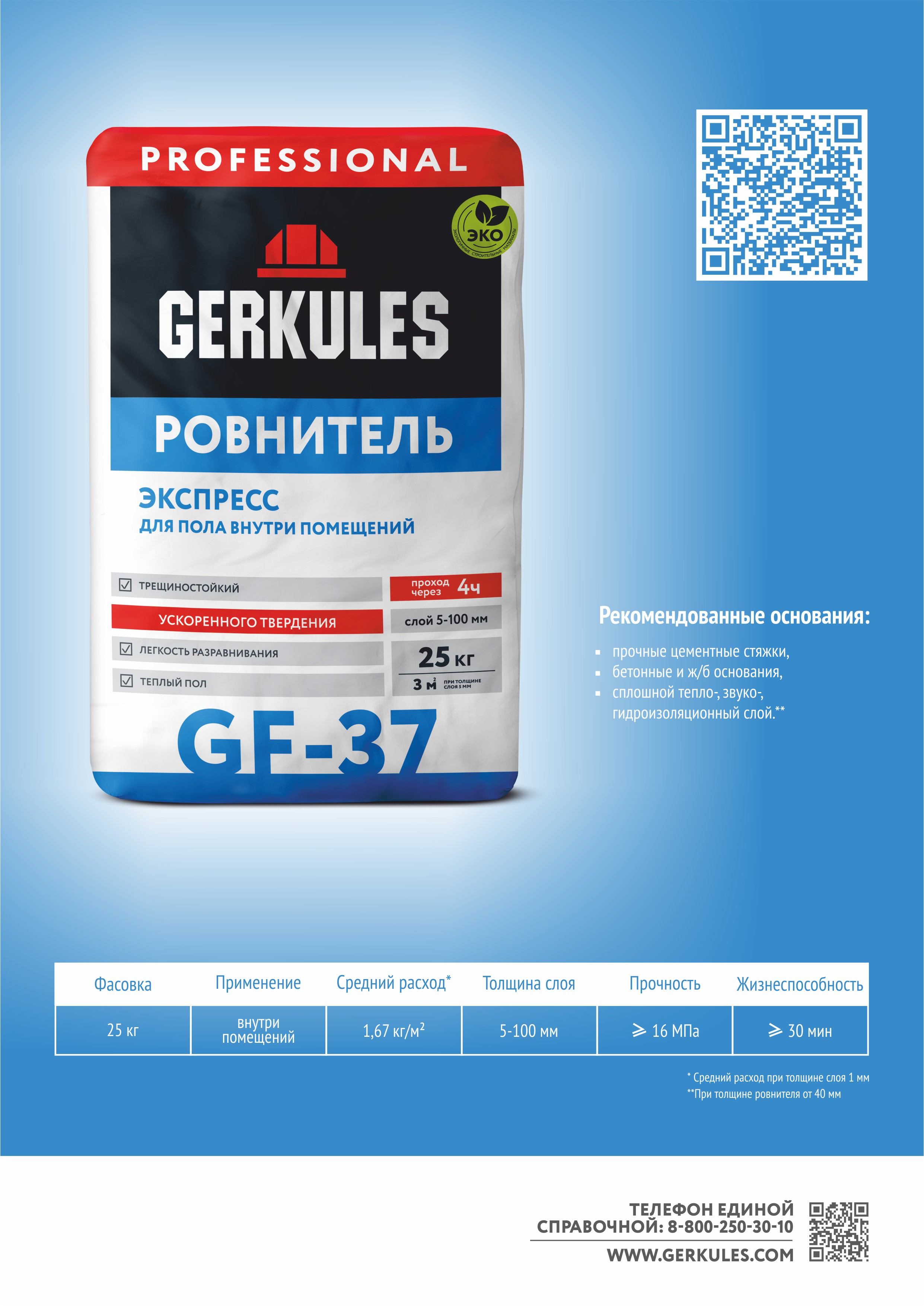 Основание должно соответствовать требованиям СП 29.13330.2011 и СП 71.13330.2017, быть прочным (не менее 15 МПа), очищенным от грязи, пыли, масляных пятен. Рыхлые участки должны быть удалены. Поверхность обработать грунтовкой GERKULES GE-29 или GE-129. Для проведения дальнейших работ грунтовка должна высохнуть. Для установления уровня пола и облегчения работы со смесью рекомендуется выставить маяки на расстоянии до 1,3 м. После подготовки основания необходимо по периметру помещения вдоль стен, колонн и других выступающих элементов уложить демпферную ленту.