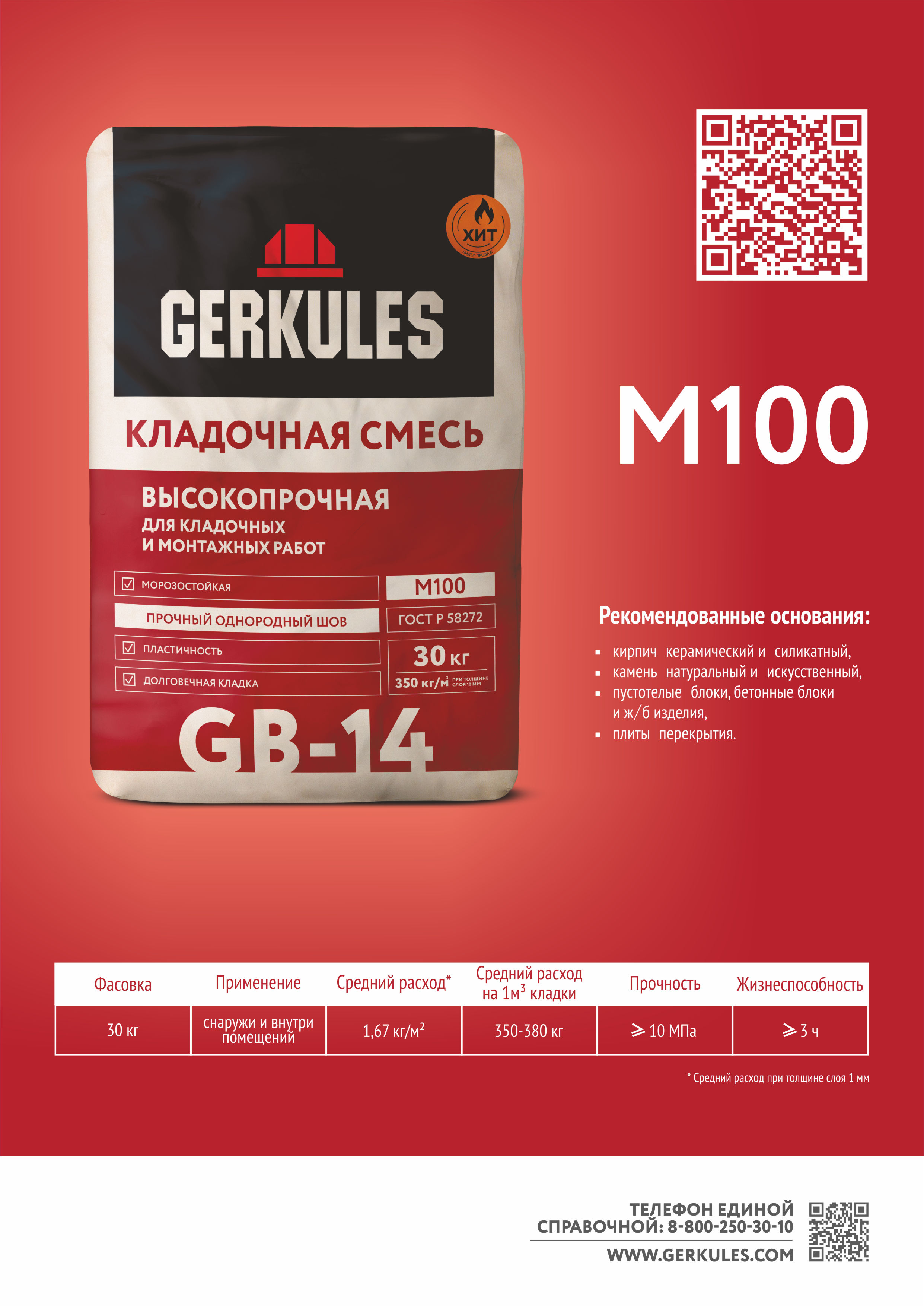 Высокопрочная кладочная смесь применяется для кладки керамического и силикатного кирпича, натурального и искусственного камня, пустотелых блоков (в том числе крупноформатных), монтажа бетонных и железобетонных блоков, плит перекрытий. Для внутренних и наружных работ при температуре не ниже -15 оС. Смесь отличается пластичностью и высоким сцеплением материалов.
