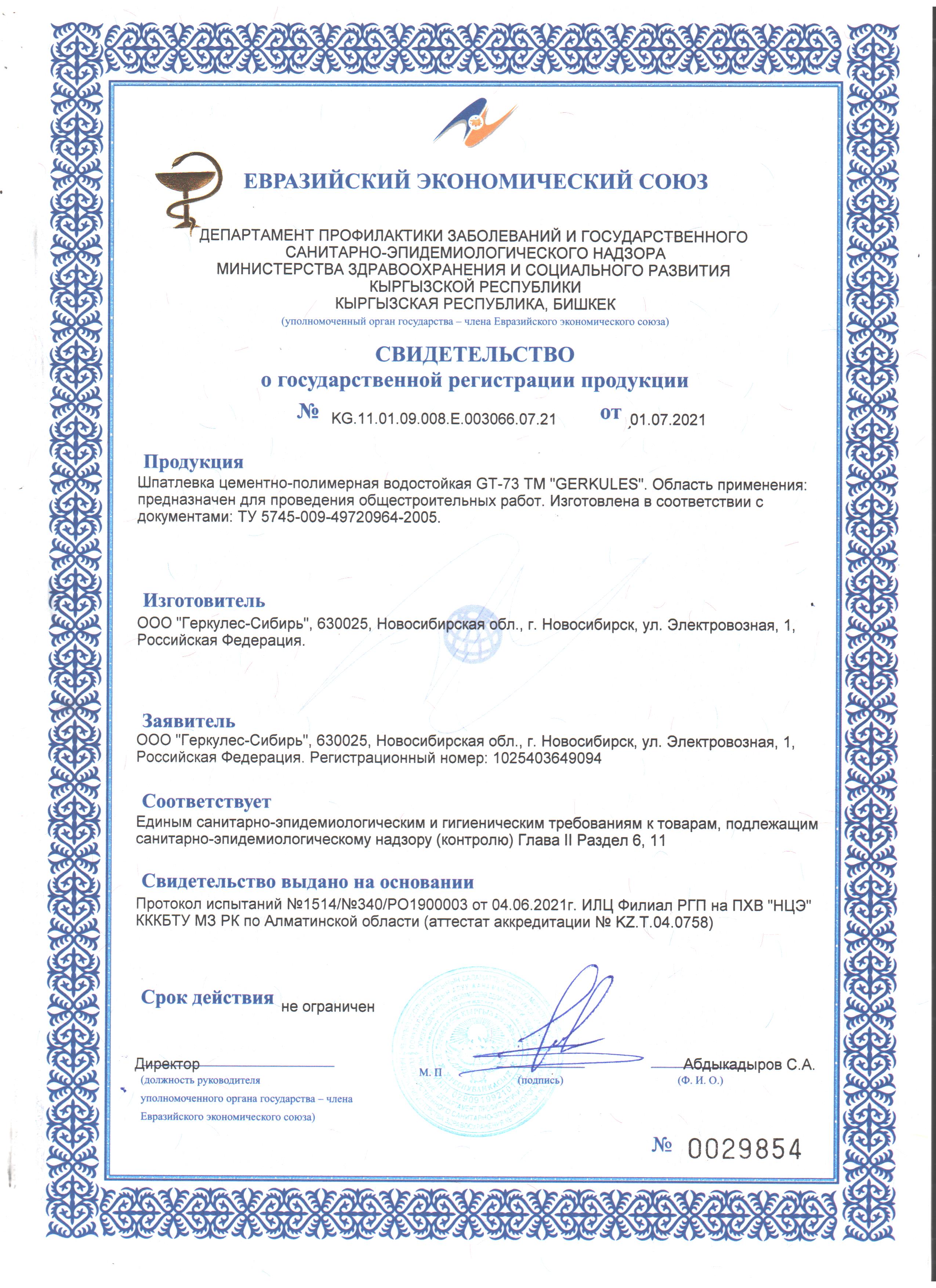 Сертификат о гос. регистрации